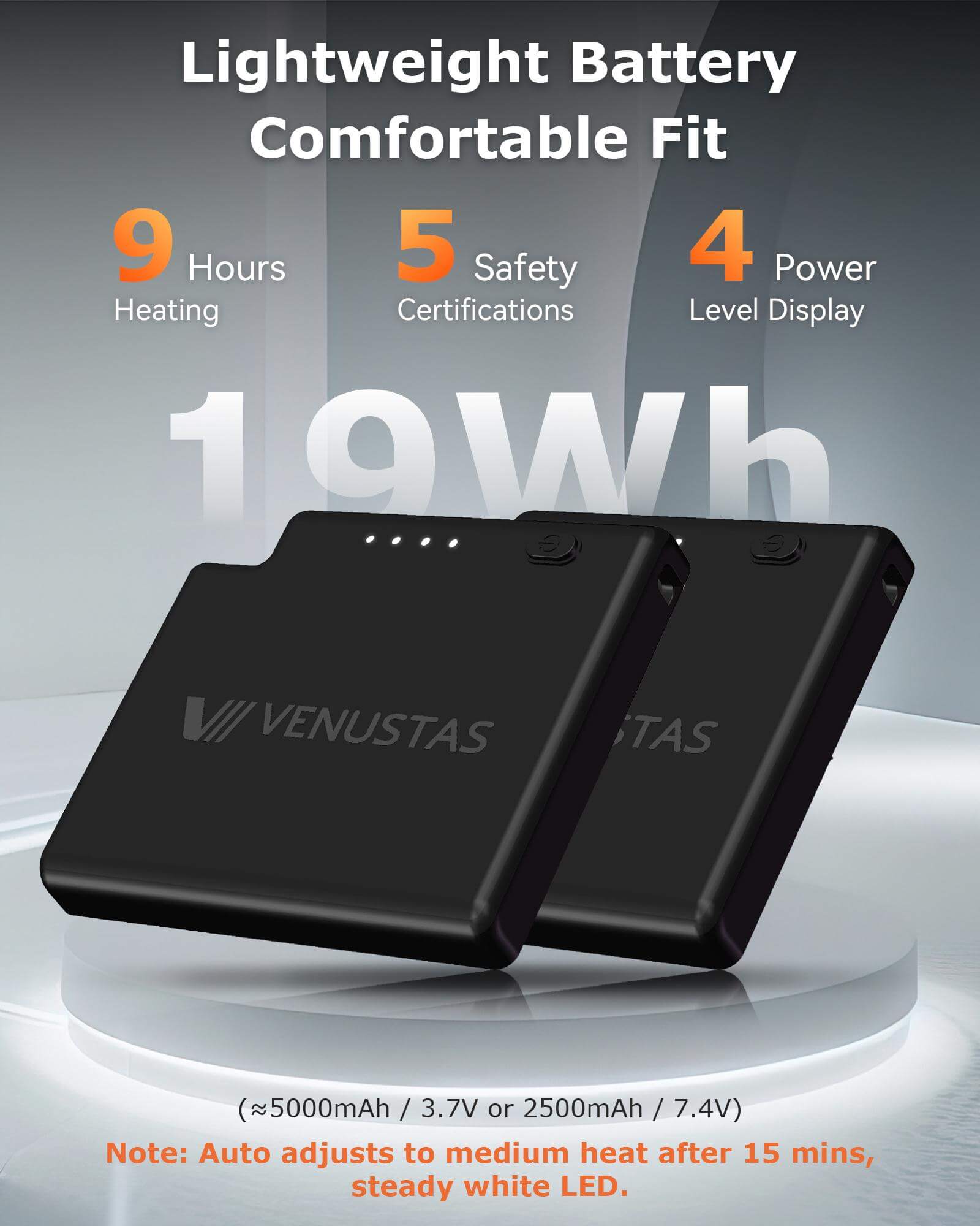 • 2 × 7.4V Battery Pack For Heated Gloves/Socks (19Wh), 2.5K